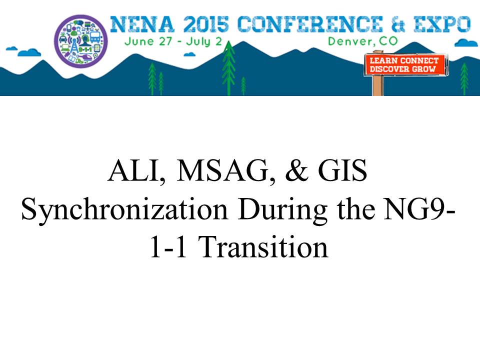 ALI, MSAG, GIS Synchronization During the NG9-1-1 Transition