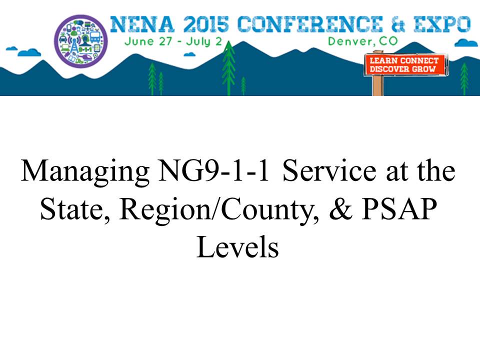 Managing NG9-1-1 Service at the State, Region/County, PSAP Levels