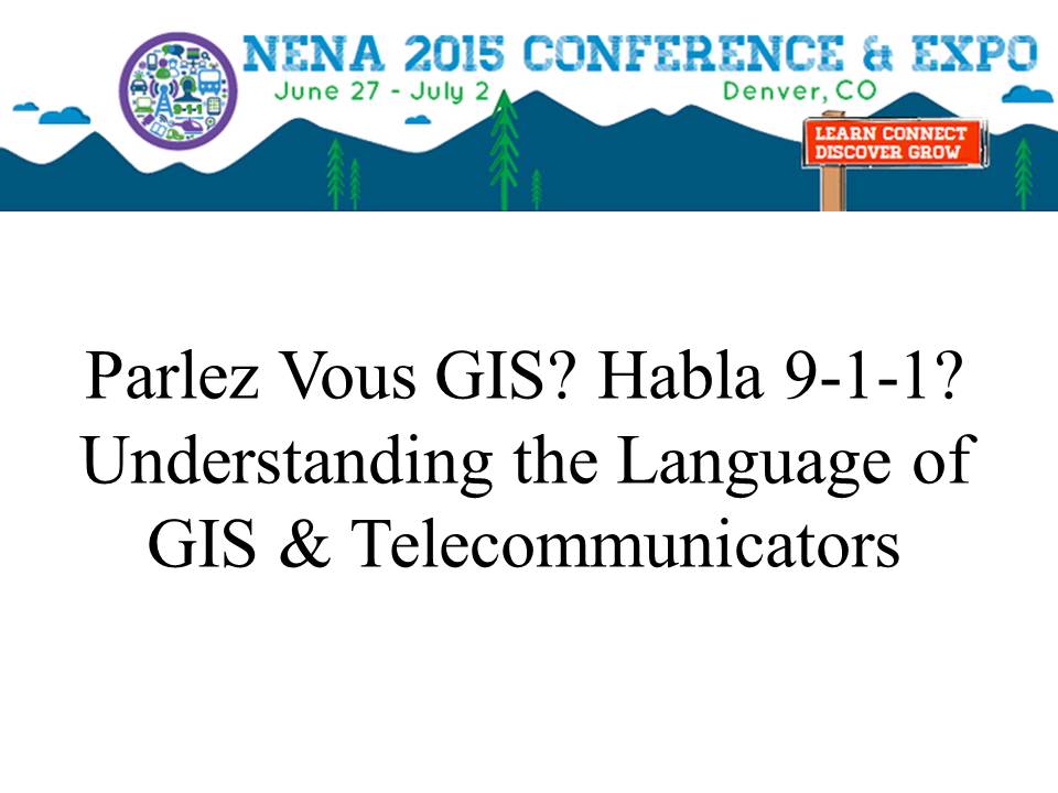 Parlez Vous GIS? Habla 9-1-1? Understanding the Language of GIS Telecommunicators